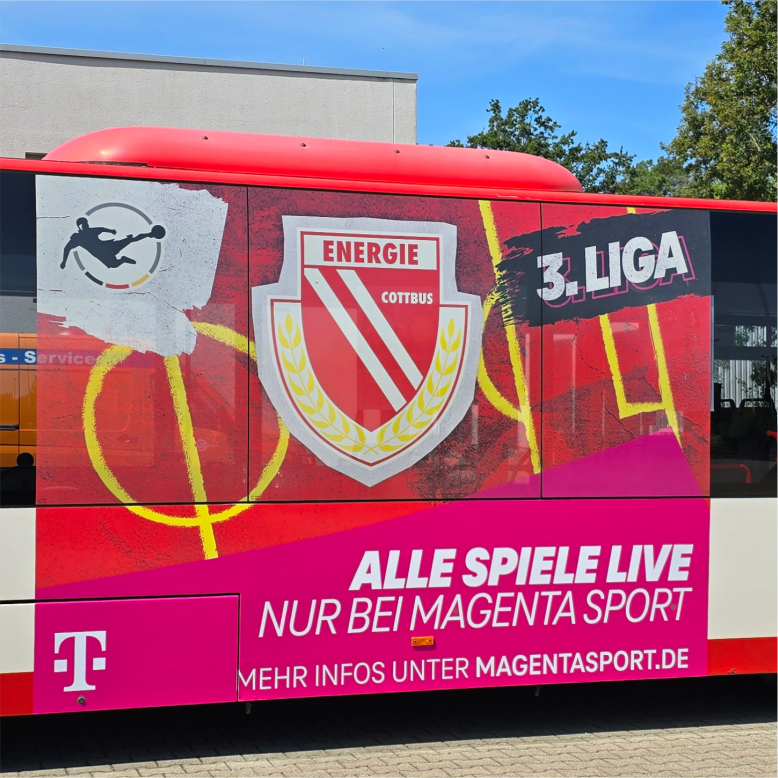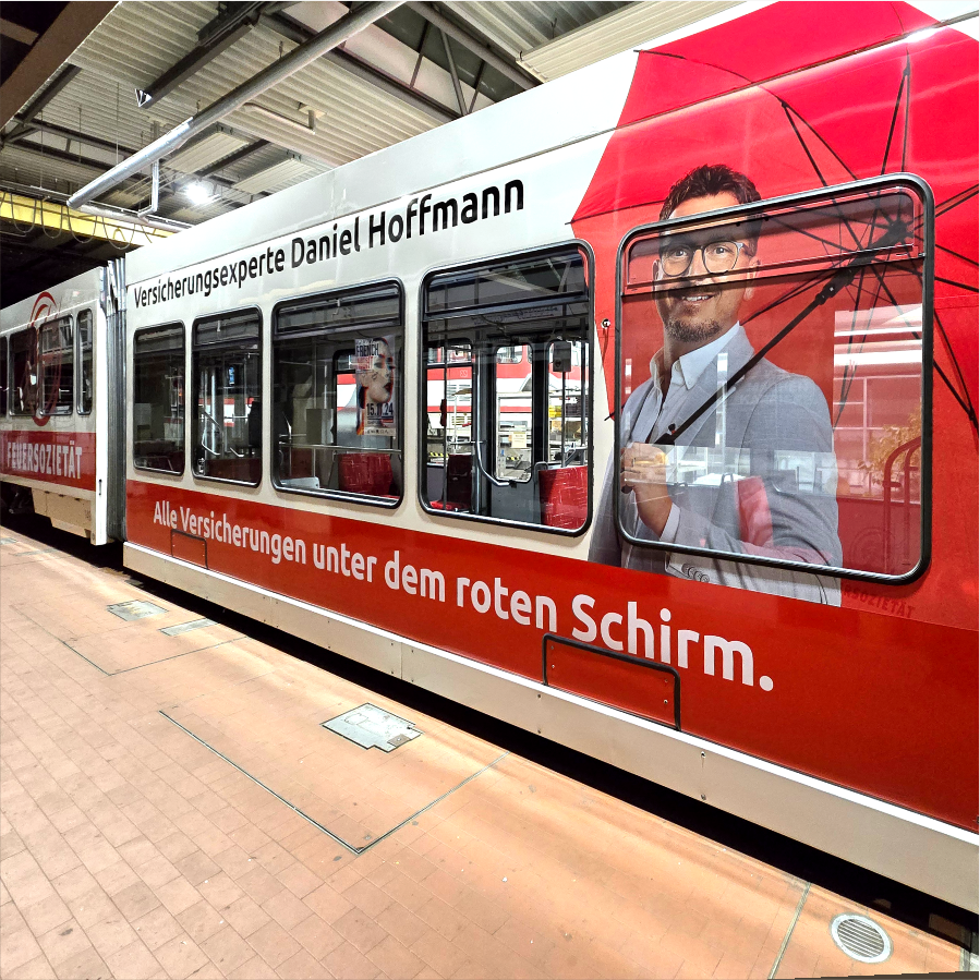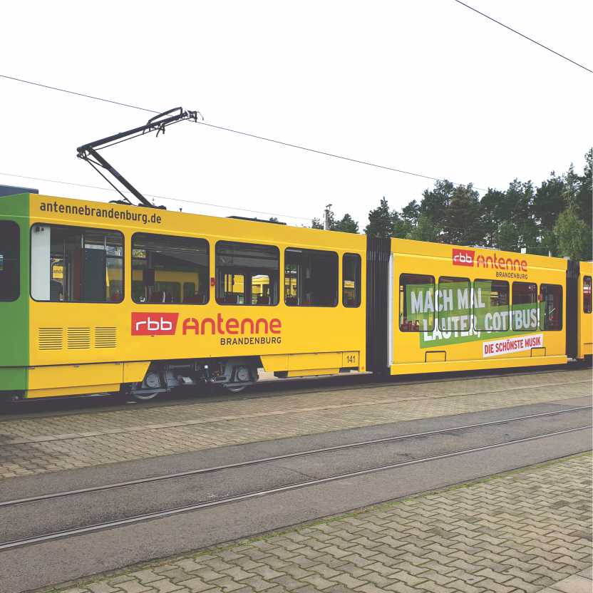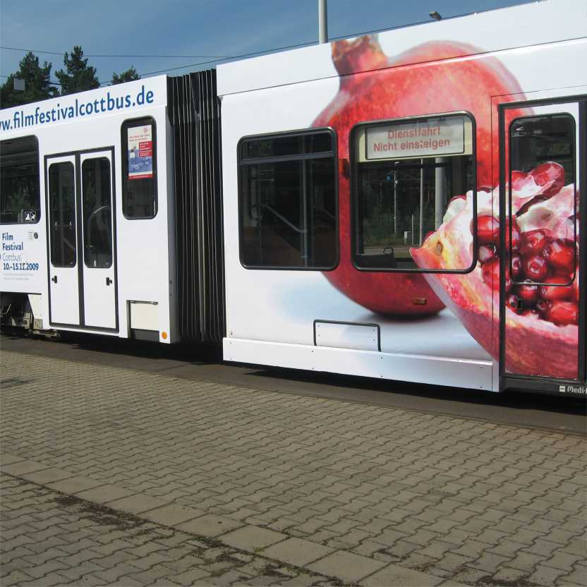 Ob Linienbus oder Straßenbahn, Ganz- oder Teilbeklebung – wir vermitteln Ihnen das passende Fahrzeug. Nach Ihren Wünschen (Orte, Zeitraum, Format, Budget) erstellen wir Ihnen gern ein individuelles Angebot und natürlich Gestaltungsvorschläge. Ein Plakataushang in den Fahrzeugen ist ebenfalls eine Möglichkeit der Nutzung der Verkehrsmittelwerbung. Layout und Druck übernehmen wir gern und organisieren den Aushang.